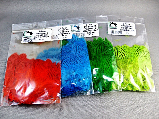 PLUME DE FAISANT ARGENTÉ UTILISÉ POUR LES STREAMERS ET LES COLERETTES.