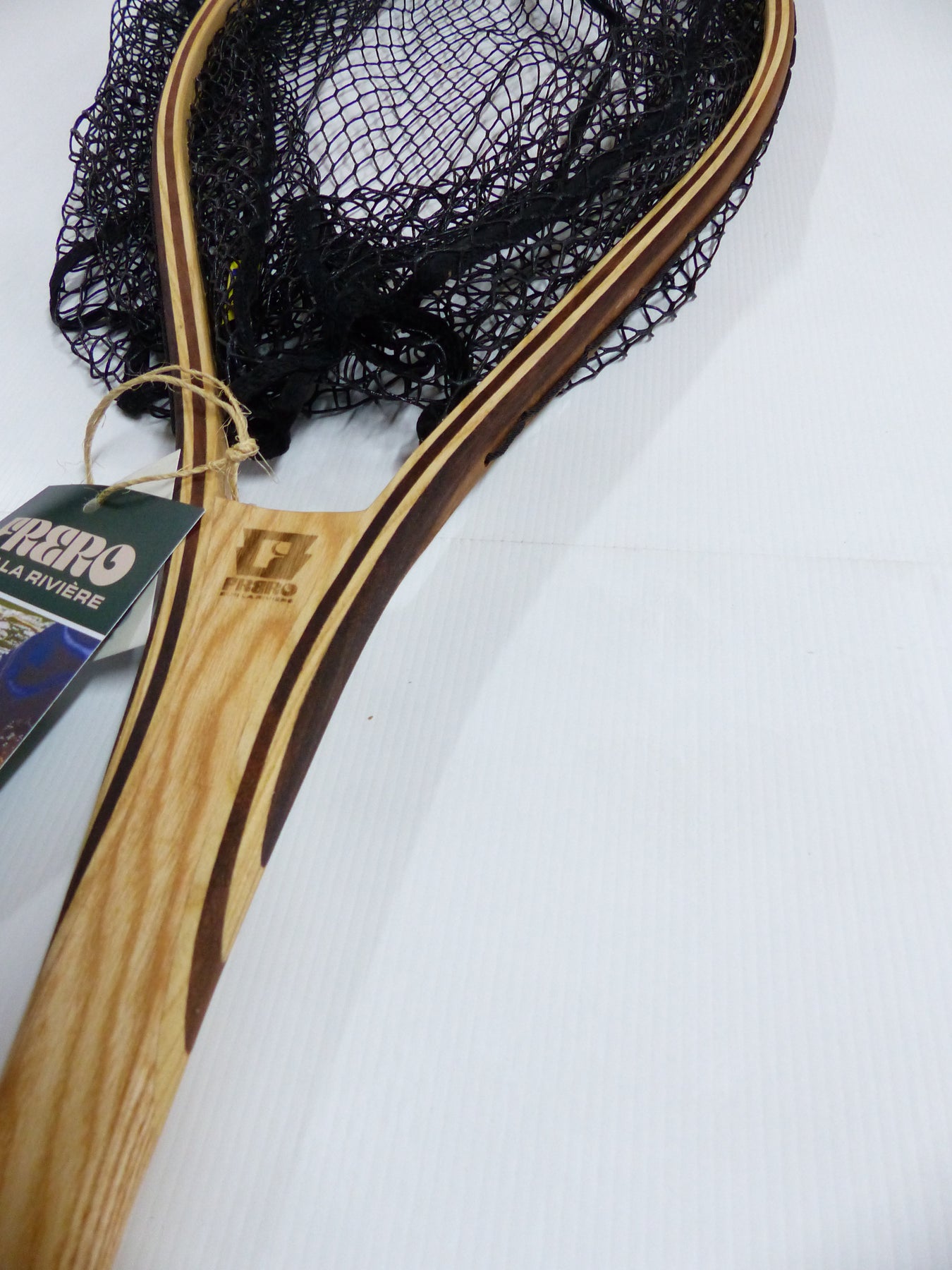 Puise artisanale en bois Fabriquée à 100% à St-Féréole-les-Neiges.  Les filets sont en nylon enduits de caoutchouc pour protéger les poissons et pour une résistance moindre dans le courant.  C'est un produit très haut de gamme fabriqué à la main.