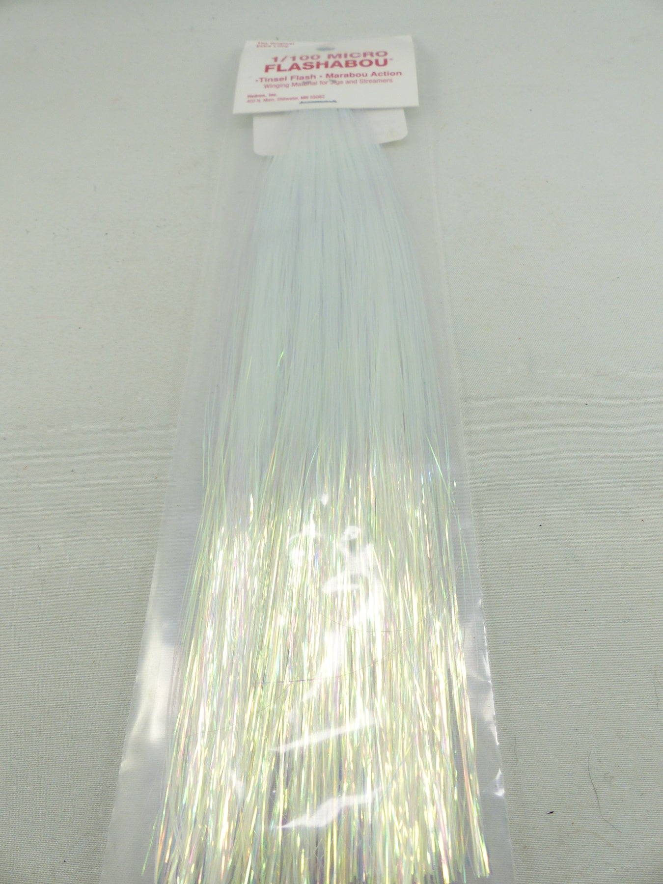 Micro-coupe Flashabou, dans une fibre plus épaisse pour plus de flash sur les petits motifs. Contient environ 1250 brins, 1/100" de large par 10" de long.
